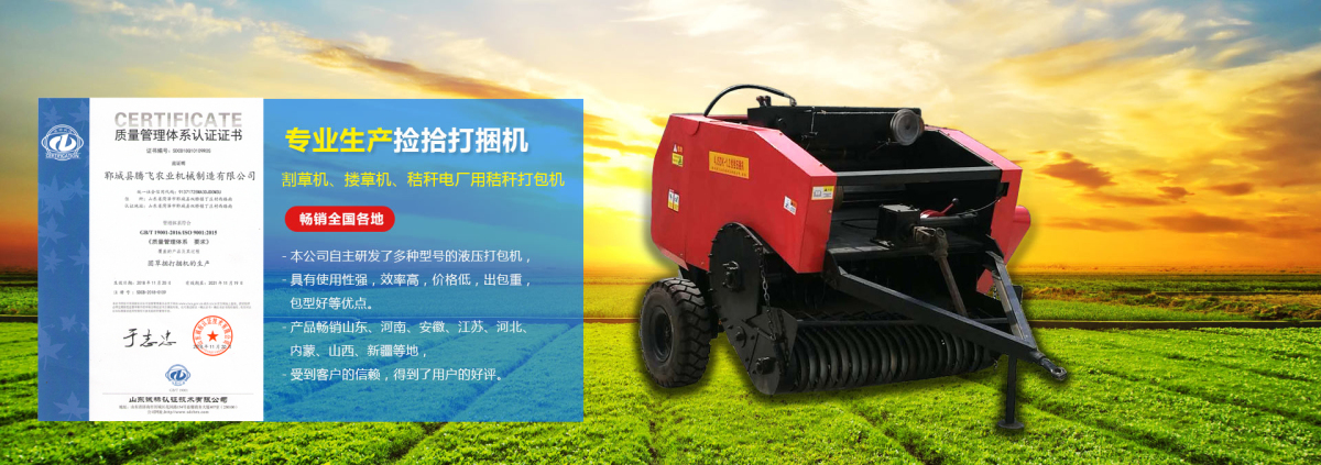 公司自主研發(fā)的秸稈撿拾打捆機(jī),擁有自主知識產(chǎn)權(quán),(產(chǎn)品外觀專利號:ZL201230029650.0;實(shí)用新型專利號:201220329192.7)產(chǎn)品暢銷全國各地,并且出口俄羅斯、利比亞、外蒙古、馬來西亞、南非、埃及等國家,客戶反映良好。2010年6月30日在山東衛(wèi)視鄉(xiāng)村季風(fēng)欄目播出。本機(jī)器是一種新型的秸稈草類的收集設(shè)備,能自動(dòng)完成牧草、稻草、小麥秸稈、大豆秸稈、油菜秸稈和經(jīng)揉搓的玉米秸稈的打捆和放捆。該機(jī)器具有結(jié)構(gòu)緊湊、操作簡單、可靠性強(qiáng)、適用動(dòng)力廣等特點(diǎn)。自機(jī)器推廣以來,深受廣大農(nóng)戶、養(yǎng)殖戶的喜愛。